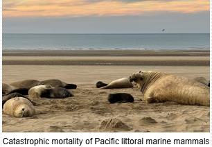 The South America H5N1 introduction resulted in infection of marine mammals with obvious contagion in a number of species of seals and sea lions. This was due to the B3.2 virus acquiring mammalian-adaptive polymerase basic mutations (Q591K and D701N) absent in North American H5N1 isolates.