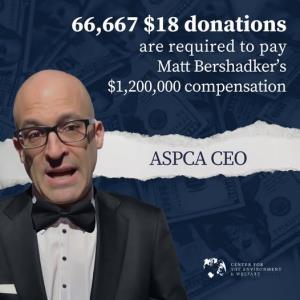 Among the 14 top ASPCA executives, the collective earnings value was $7.1 million with an average of $507,000 and a range of $328,000 to $1.2 million paid to CEO Matt Bershadker.