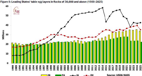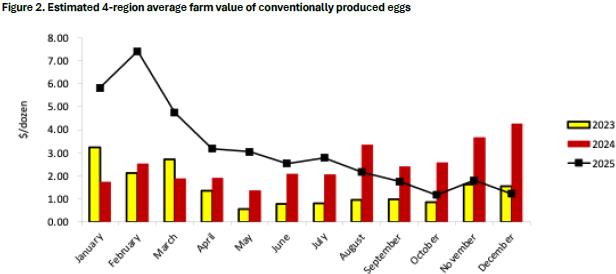 The volume of exports of shell eggs and products is conditioned by the domestic needs of importers, price against competitors and regulatory disease and logistic restraints. Imports are determined by domestic needs with reduced supply due to flock depopulation as the principal driving factor during the first 10 months of 2025.